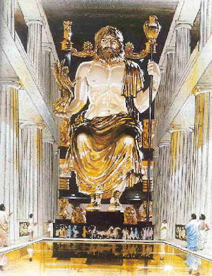 Κατά τον 5ο π.Χ. αιώνα οι πολίτες της Ολυμπίας αποφάσισαν να οικοδομήσουν έναν ναό για να τιμήσουν το Δία. Το μεγαλόπρεπο οικοδόμημα χτίστηκε ανάμεσα στα 466 και 456 π.Χ. Κατασκευάστηκε από λίθινους ογκόλιθους και συμπαγείς κίονες. Για λίγα χρόνια μετά την ολοκλήρωσή του δεν υπήρχε άγαλμα του Δία, ώσπου αποφασίστηκε να γίνει κι αυτό. Ανατέθηκε στον περίφημο Αθηναίο γλύπτη Φειδία.